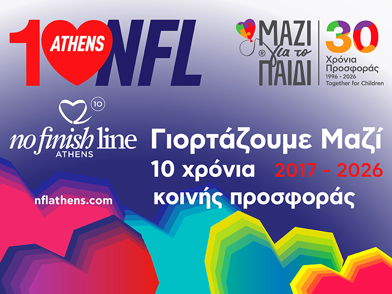 Το No Finish Line είναι ένας μοναδικός διεθνής φιλανθρωπικός αγώνας δρόμου που απευθύνεται σε όλο το κόσμο, αθλούμενους και μη. Οι συμμετέχοντες στο Charity Run περπατούν και τρέχουν όπως θέλουν, όσο θέλουν, όποτε και όσες φορές θέλουν κατά τη διάρκεια της διεξαγωγής του, ενώ κάθε χιλιόμετρο που καταγράφουν, η διοργάνωση το μετατρέπει σε χρήματα που τα διαθέτει για την υλοποίηση παιδικών προγραμμάτων.