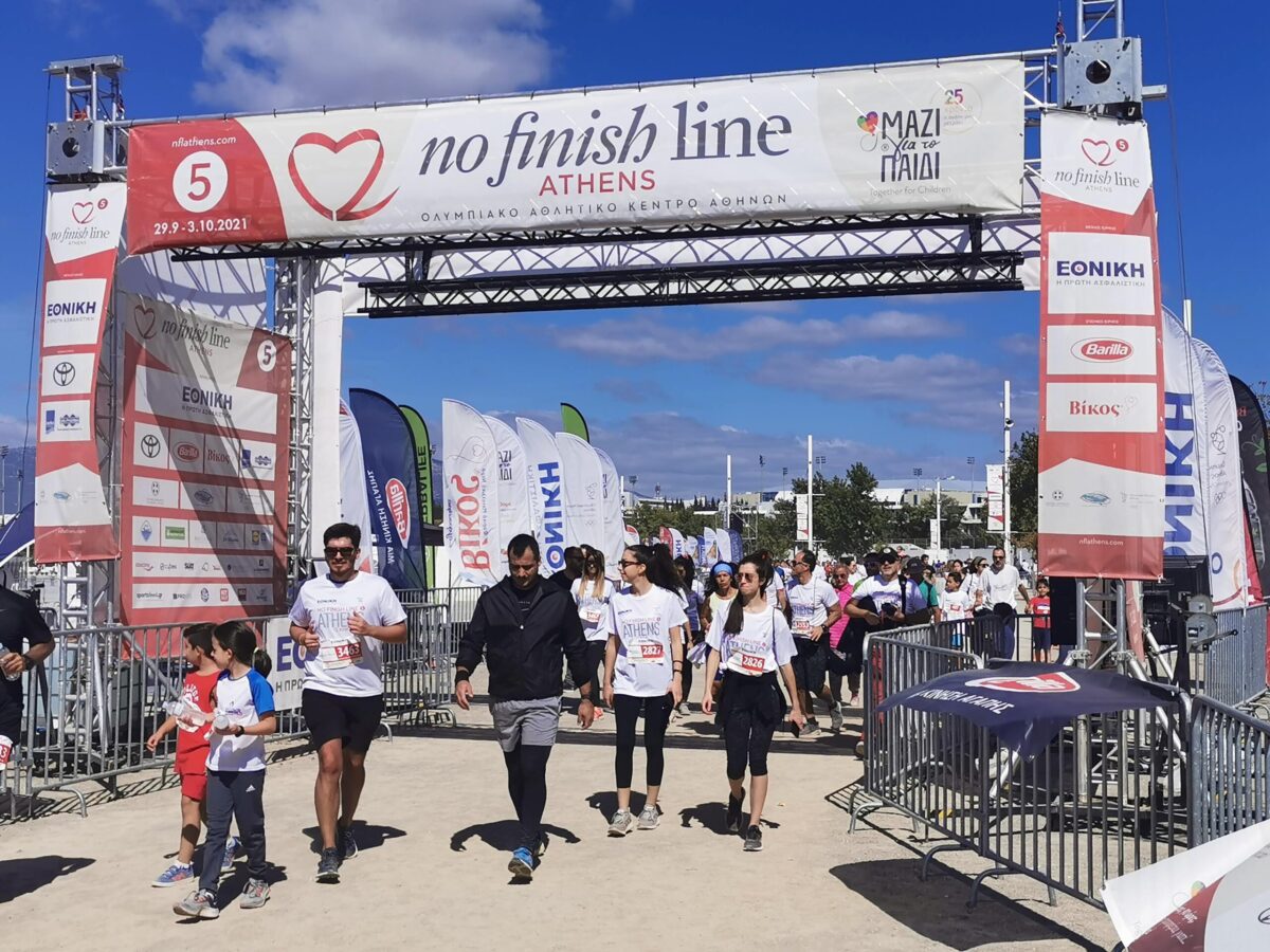 21 Δεκεμβρίου, 2021Tην προσφορά του προς τα παιδιά που έχουν ανάγκη συνέχισε με θριαμβευτικό τρόπο το No Finish Line Athens, ο κορυφαίος φιλανθρωπικός αγώνας στην Ελλάδα και τον κόσμο, που ολοκληρώθηκε την Κυριακή 3 Οκτωβρίου στο ΟΑΚΑ, στην πρώτη διοργάνωση μετά την πανδημία.