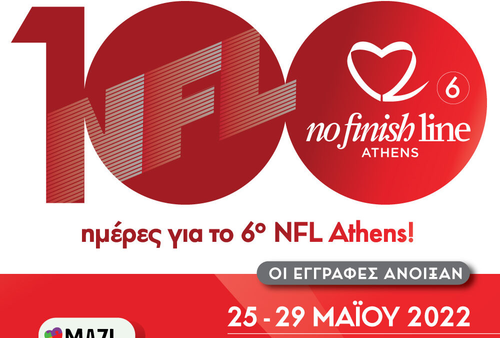 Η καρδιά του 6ου No Finish Line Athens χτυπά φέτος 25 – 29 Μαΐου, σε νέο χώρο διεξαγωγής, την Αγορά του Καλατράβα στο ΟΑΚΑ. Οι εγγραφές άνοιξαν σήμερα (14/2) στο nflathens.com για 12.000 άτομα και σηματοδοτούν την αντίστροφη μέτρηση για το ετήσιο ραντεβού μικρών και μεγάλων. 100 ημέρες απομένουν για την έναρξη του NFL της Αθήνας, ενός αγώνα αγάπης και προσφοράς στην Ένωση «Μαζί για το Παιδί».