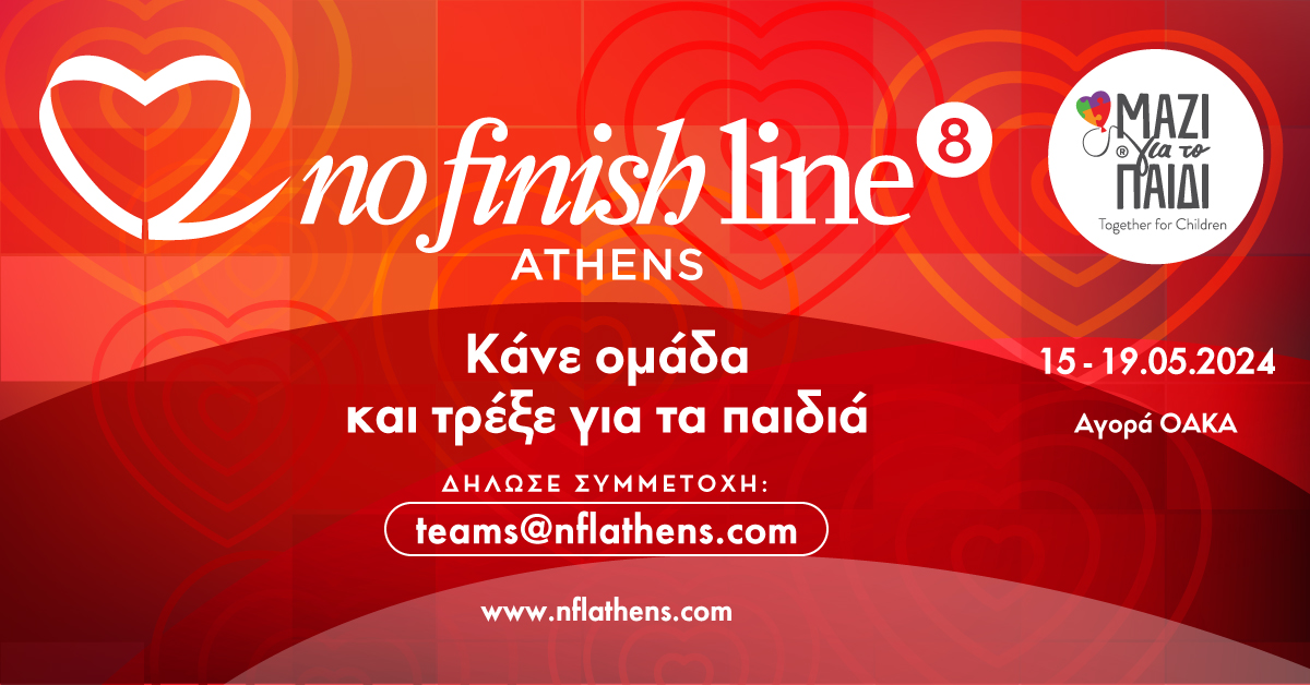 17 Δεκεμβρίου, 2023Η καρδιά του 8ου No Finish Line Athens άρχισε να χτυπά με τις πρώτες ομαδικές συμμετοχές να έχουν ήδη καταγραφεί για τον αγώνα του 2024 που θα διεξαχθεί 15-19 Μαΐου στο ΟΑΚΑ.