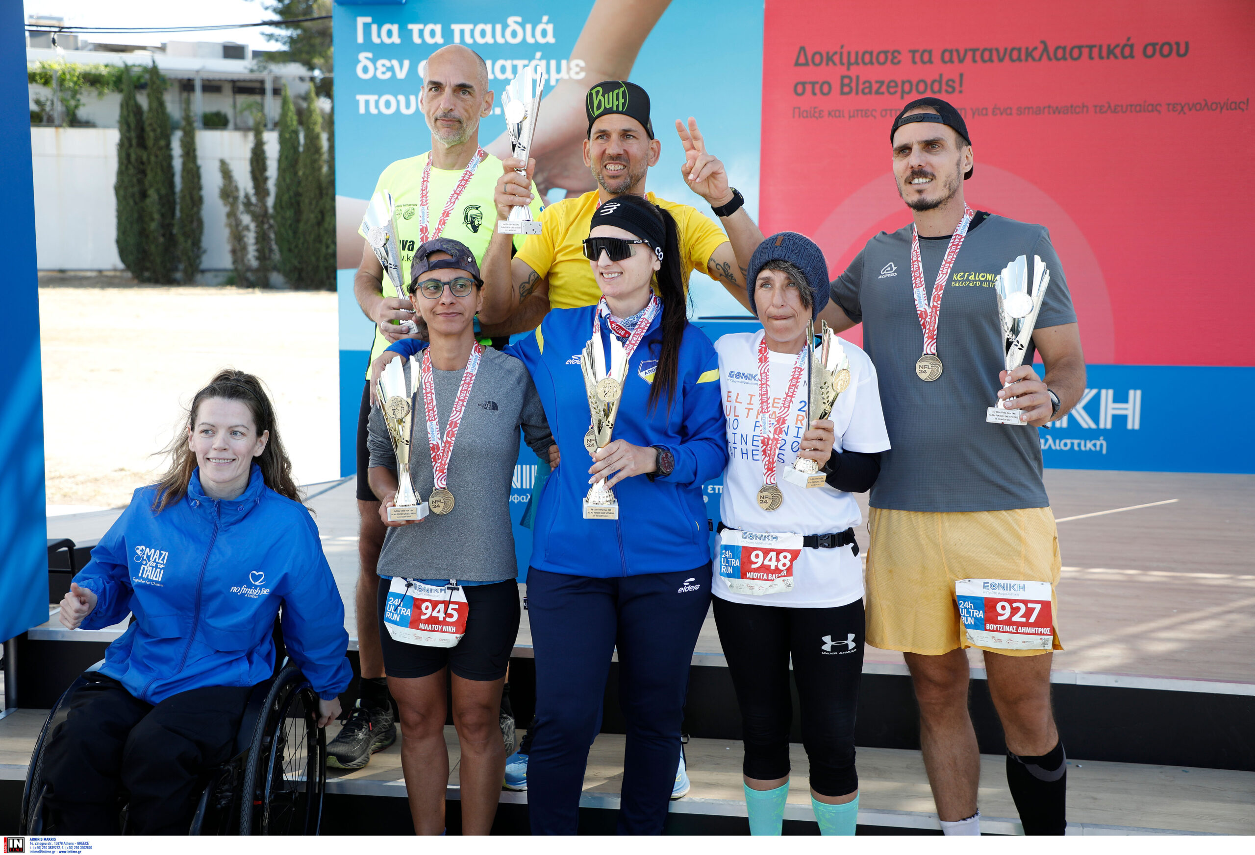 Τις απονομές έκανε η Χρυσή Παραολυμπιονίκης της κολύμβησης και Πρέσβειρα του 9ου NFL Athens, Αλεξάνδρα Σταματοπούλου που συνεχάρη όλους τους δρομείς ενώ είχε και θερμό εναγκαλισμό με τον Γιώργο Παπαλιό που την ενθάρρυνε να συνεχίσει να σαρώνει τα μετάλλια!