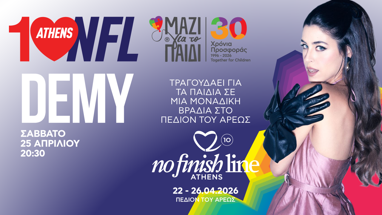 Η Demy, μία από τις κορυφαίες και πιο επιτυχημένες τραγουδίστριες της γενιάς της, που μετρά 15 χρόνια δυναμικής παρουσίας στην ελληνική μουσική θα χαρίσει τη φωνή και την ενέργειά της στους δρομείς του NFL Athens συμβάλλοντας και εκείνη στην συγκομιδή χιλιομέτρων Αγάπης για το «Μαζί για το Παιδί».