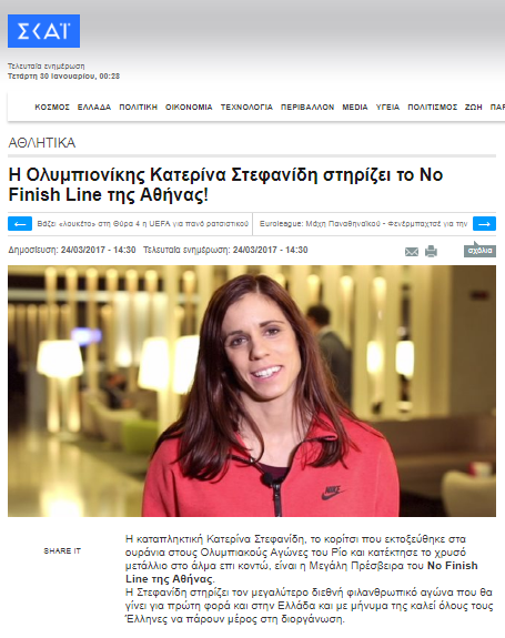 Η Οργανωτική Επιτροπή θέλει να πει ένα μεγάλο ευχαριστώ σε όσους δήλωσαν συμμετοχή, αλλά και σε όσους ενδιαφέρθηκαν για τον κορυφαίο φιλανθρωπικό αγώνα στον κόσμο, που θα γίνει για πρώτη φορά στην Ελλάδα και τα έσοδα του θα πάνε στην Ένωση «Μαζί για το Παιδί», η οποία θα τα προσφέρει στα παιδιά άπορων οικογενειών.